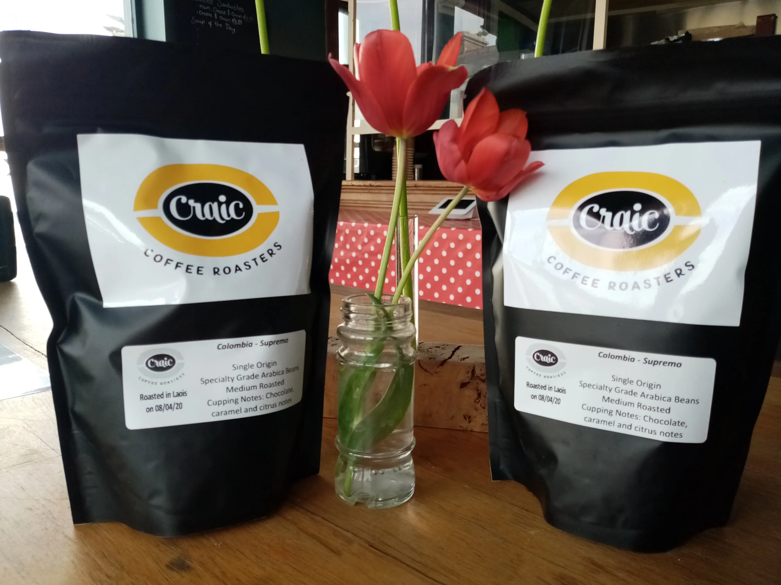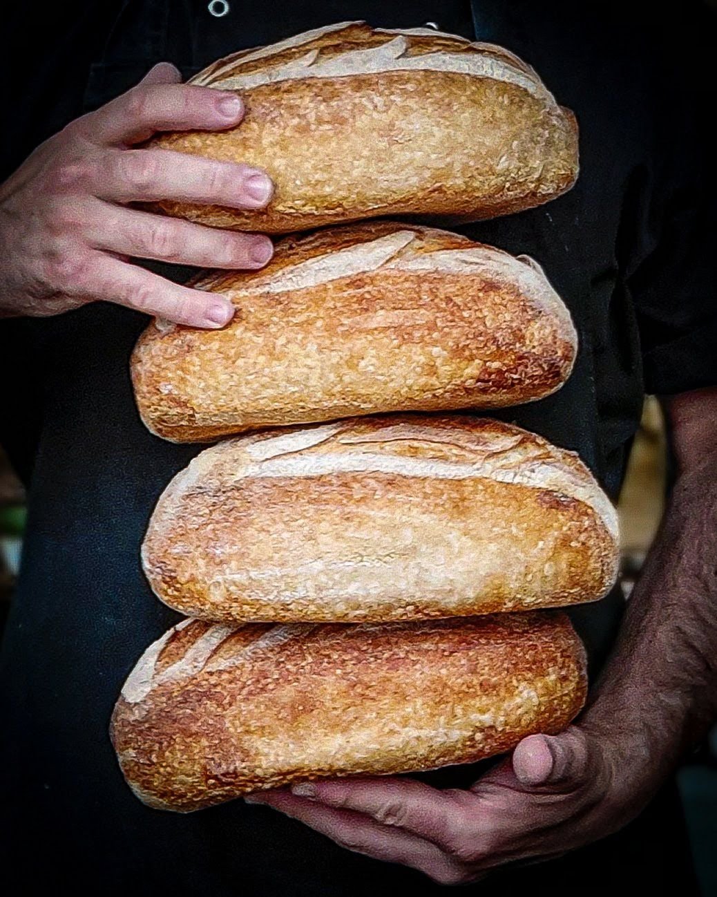 Four par-baked sourdough loaves consisting of three Country White and one Granary plus 2x 250g Craic Coffee Beans